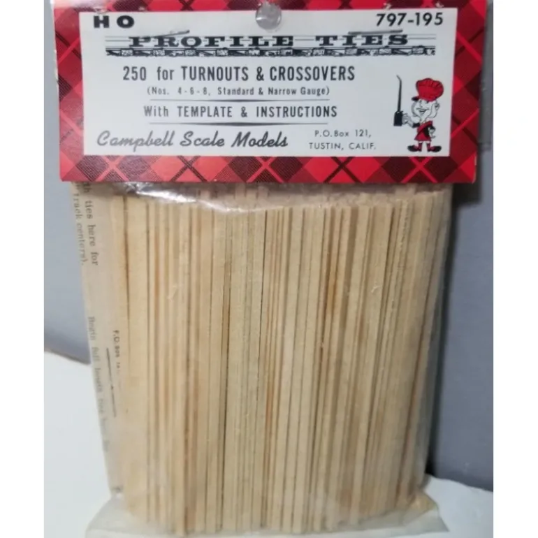 This is a Campbell Scale Models 797-195 HO Profile Ties Turnout & Crossovers (Pack of 250).