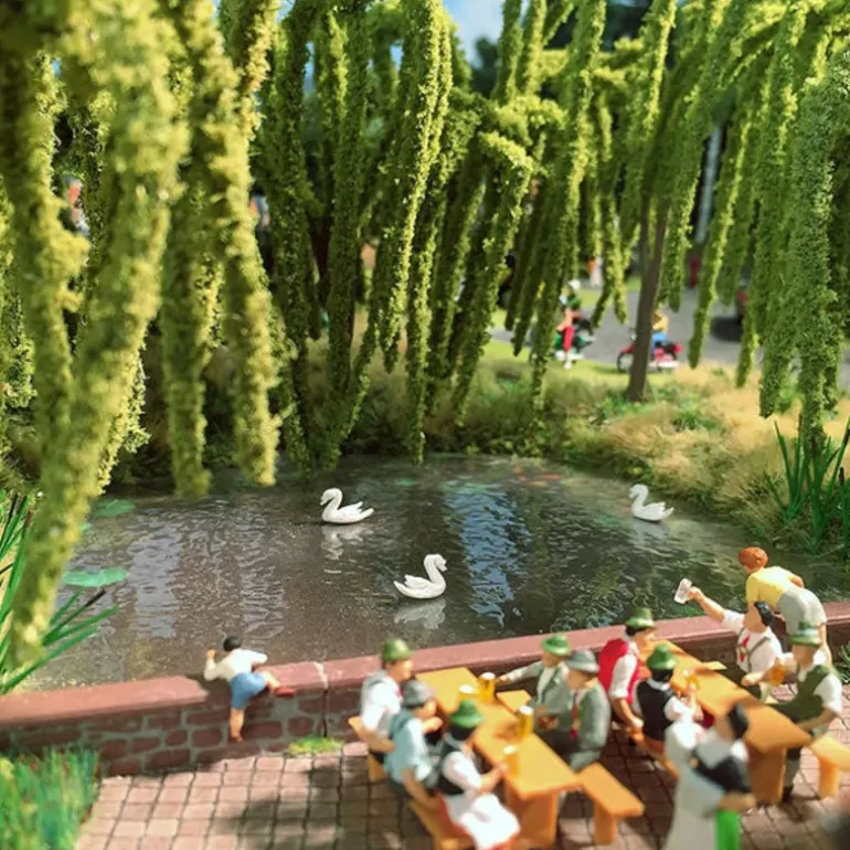 This is a Busch 5482 HO Scale Animated Pond with 3 Swimming Swans. Size: 7-1/2 x 5-5/16 19 x 13.5cm, 14-16V AC.