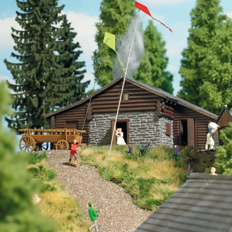 This is a Busch 7866 HO Kite Flying Figure Set. Girl and boy flying kites.