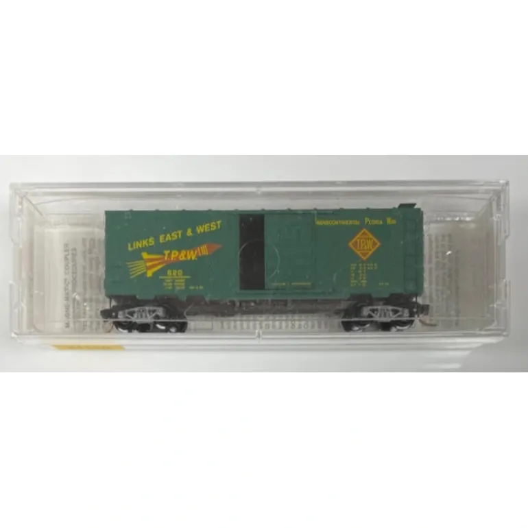 This is a Micro-Trains 20120 N Scale Toledo Peoria & Western Railroad 40′ Box Car #620. This car features knuckle couplers, plastic wheels and a plastic body construction.