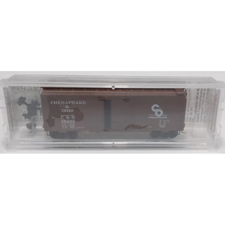 Here is a Micro-Trains 20440 N C&O 40′ Standard Boxcar, Single Door #18299. This car features plastic construction, plastic couplers and plastic wheels.