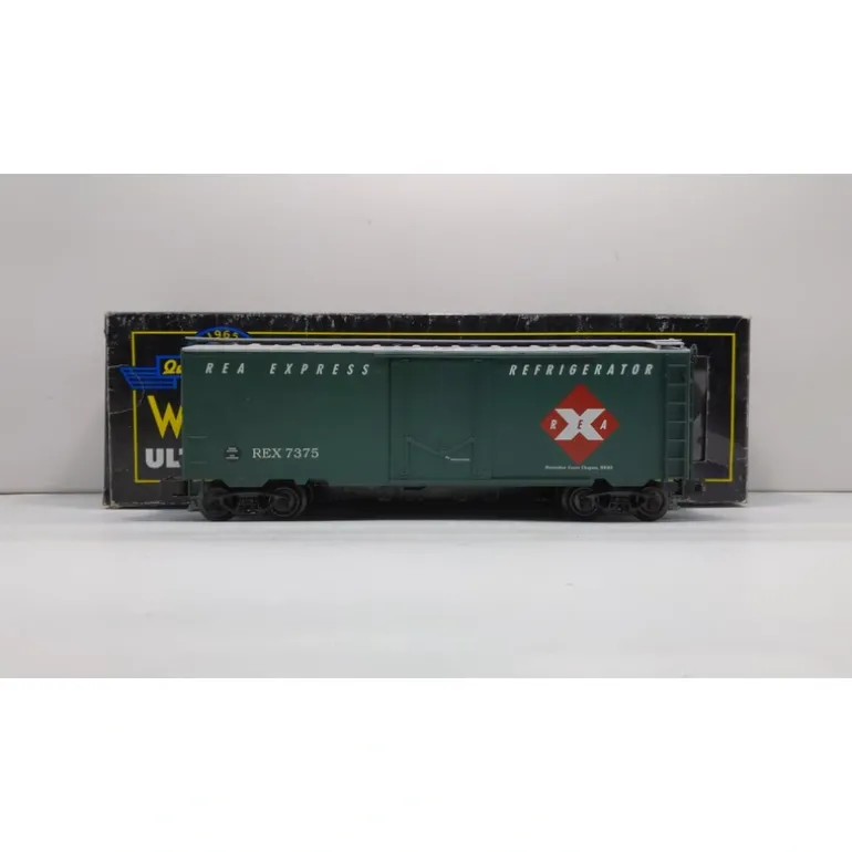 Here is a Weaver O REA Express 40′ Plug Door Boxcar #7375 (3-Rail). This car features die-cast metal sprung trucks, operating knuckle couplers, metal wheels and axles.