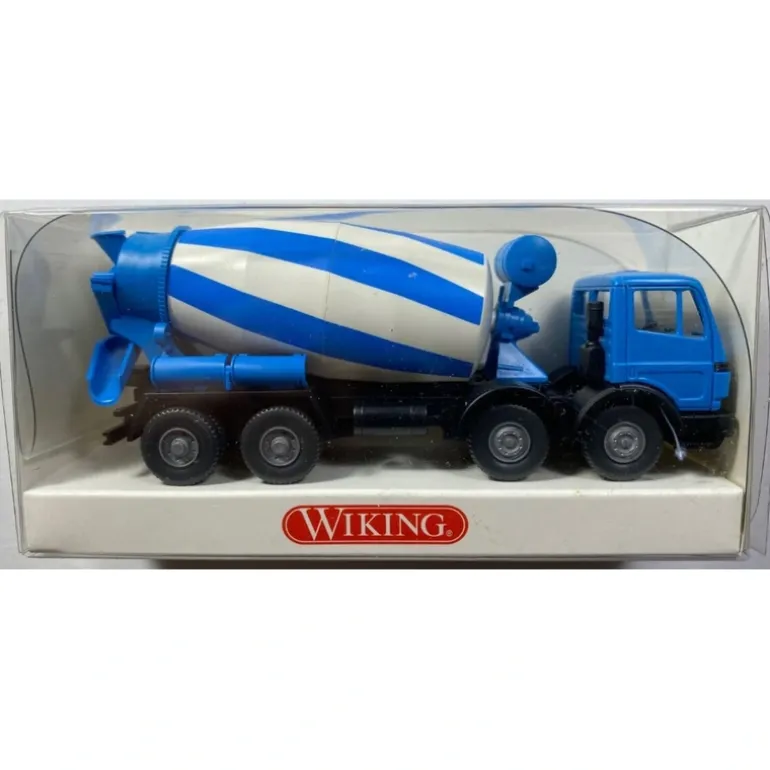 This is a Wiking 6810428 HO Concrete Mixer Blue W/ White Stripes.