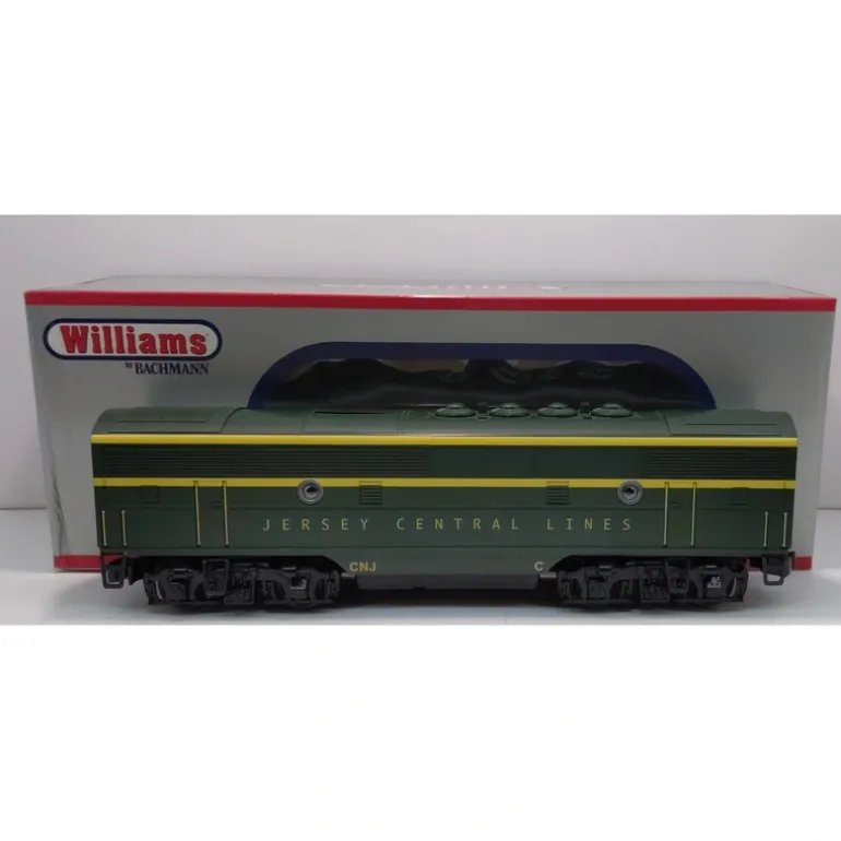 Here is a Williams 20206 Jersey Central Lines EMD F3B Non-Powered Diesel Locomotive. This locomotive features 4 wheel trucks, fixed couplers, die-cast trucks, pilots, and frame.