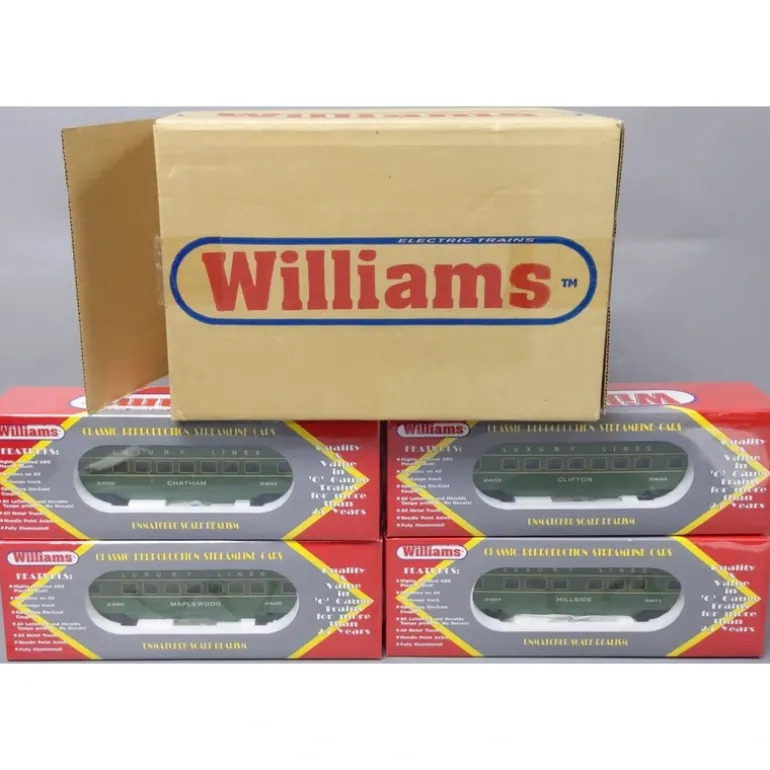 Here is a Williams O 02710 Luxury Lines O-27 Streamliners (4-Car Set). Each car features die-cast metal sprung trucks, metal wheels and axles, and operating knuckle couplers.